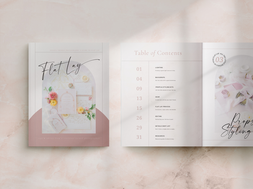 Before Jessica fell in love with wedding photography, she used to design and print bespoke wedding stationery for couples all over. She has compacted all of her years of experience as a stationer and wedding photographer into this e-book guide, sharing her process in hopes that it helps you in your creative flat lay journey.